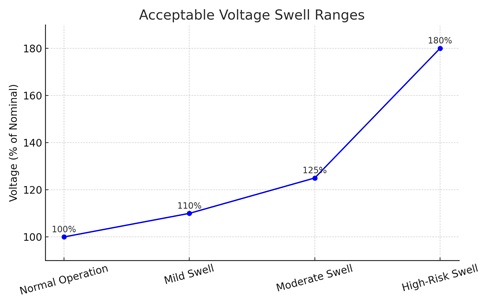 – Moderate Swell: 110%–125% — may cause nuisance tripping