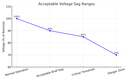 – Acceptable Sag: Above 85% for very brief durations (1–2 cycles)