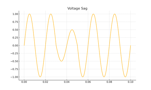 Voltage sag, also known as a voltage dip, refers to a short-duration reduction in the RMS (Root Mean Square) voltage level. Typically, it ranges from 10% to 90% of the nominal voltage and lasts from 0.5 cycles (approximately 10 milliseconds at 50 Hz) up to 1 minute. While the voltage does not drop to zero (as in an interruption), it falls low enough to affect the normal operation of electrical equipment.