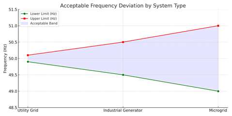 – Critical processes (e.g., in manufacturing or data centers) often require tighter thresholds: ±0.1 Hz